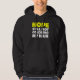This hoodie is much better than I expected. top quality, true sizing, and really comfy. I was a bit worried that the lettering would be too dark on the navy blue hoodie, but once it arrived it was perfect. Easy to see the words, and the quality of the wording is fabulous. I will be buying more hoodies in future
