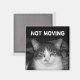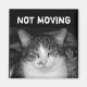 Bild av en tabb-vit katt sitta på en soffa med anpassadet "Inte Flytta" som skrivs ut ovan.