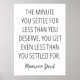 Vackert och starkt citat från Pulitzzerpristagaren Maureen Dowd: När man nöjer sig med mindre än man förtjänar får man ännu mindre än man har bestämt sig för. ALDRIG SETTLE FÖR MINDRE ÄN DU FÖRTJÄNAR. Aldrig.