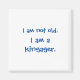 Fyrkantig magnet läser "JAG ÄR INTE GAMMAL. JAG ÄR EN KINGAGER." Rolig magnet för ditt kylskåp eller var som helst.. Mörkblå bokstäver kan ändras till valfri färg med hjälp av "redigera design"-funktionen. Du kan ändra teckensnittet på samma sätt. Bra för ett skratt, när som helst.