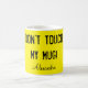 Denna design presenterar ordstävet, "gör inte handlag min mugg! " tillsammans med ett anpassadenamn av ägaren.