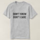 Inte gör Know att bry sig inte grå färgT-tröja T Shirt