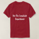 För de, som önskar att klaga - gå inte till denna person. Hans skjorta läser klart: Inte klagomålavdelningen.