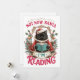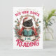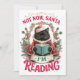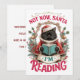 En rolig och glad juldesign som visar en svart katt iklädd en röd cape och en vit rollkragepullover, helt upptagen av att läsa en bok. Katten sitter framför ormbunks- och järnekvistar, under en gyllene båge prydd med klockor. Den färgglada texten lyder, "Inte nu jultomten, jag läser". Denna design finns tillgänglig på olika produkter som gör perfekta gåvor till bokälskare.