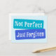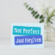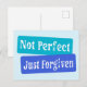 Kristna citat Inte Perfekt Förgivna i vita bokstäver på blå blockformer.