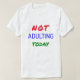 "NOT ADULTING IDAG" är den humoristiska texten på denna unika t-shirt. Skriptet är i klarrött, blått och grönt färg och har ett uddat ansikte på "O" på NOT.