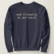 Det här är den sortens meddelande man normalt sätter på en hund så att folk inte försöker klappa den och blir bitna, så att ha det på en tröja för en person att bära är roligt men förmedlar också budskapet att man nog bara vill bli lämnad ifred.