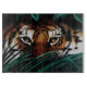 Från en slöja av frodiga gröna blad framträder en kraftfull tiger vars ögon griper betraktaren i detta slående och stämningsfulla konstverk. Den rika kontrasten mellan djungelns djupa grönska och de varma orangea ränderna skapar en känsla av mystik, smygande rörelse och rå skönhet. Verket fångar vildmarkens väsen och frammanar den tysta spänningen hos ett rovdjur som är gömt i full syn. Perfekt för de som älskar vilda djur, naturentusiaster och alla som dras till djärv, fängslande djurkonst.