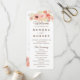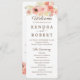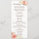 Det vackra bröllopsprogrammet har koral rosa ros accentuerat med guld löv och grenar. Den bruna mörken koordinerar perfekt med rosa- och guld-blommigtens utformning. På framsidan visas parets namn, datum och plats för bröllop samt ceremonidetaljer. Baksidan är namn i bröllopsfesten. Alla detaljer, inklusive färg, är helt och hållet anpassade. Observera att guld-löven inte är guld-folie och kommer inte att vara blanka i det tryckta programmet.