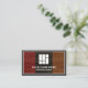 Command attention with this Interior Design Business Card. Featuring a high-definition dark wood grain texture in deep crimson and charcoal tones, this business card template is designed for architectural designers, luxury home decorators, and high-end staging professionals. The front showcases a sharp geometric window icon framed in a clean white border, while the back transitions to a solid matte black finish for a professional, high-contrast display of your contact information. This customizable business card projects a sophisticated and grounded brand image, perfect for specialists in modern industrial or executive residential design.