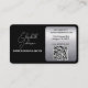 Functionality is enhanced on the back with a customizable QR code, allowing for direct access to a specified online destination (such as a website, Instagram account, or portfolio).