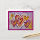 Vattenfärgning av hjärtan som hänger samman med varandra, som kärlek, från livsförhållanden. Färg är en mjuk lavendel lila, nyp, rött, och guld. Denna bild är tänkt som en hyllning till alla dem vi kärlek i vårt liv. De sammanflätande hjärtförbindelserna i kärlek håller oss samman i glädje och firande. Det är också kärlek för att stärka våra själar för livets utmaningar. Anpassa vykorten med egen text och bilder med alternativet Anpassa den. Gör speciella Alla hjärtans dagskort, Bröllop Tackkort, Förlovningens Spara-till-datum, Baby Tillkännagivande för födelse, eller dina speciella anpassningsbar-hjärtan-vykort! Vinsterna från denna försäljning stöder den icke-vinstdrivande verksamheten 501(c)3 DonnaBellas Änglar.