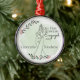 This line art displays two hands interlocking. Two holly branches float around the hands, and a soft pale greenish watercolor splash is the background. On the right side of the ornament, it reads, “Our First Christmas Engaged 2024.” The names of the couple are on the left and right sides of the ornament, which you can personalize. These interlocking hands are graceful, powerful, and romantic and will make a lovely gift.