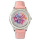 Decorative International Women's Day 2026 ladies watch with colourful paint splash background in pink, blue, lilac and yellow. International Women's Day is a global day celebrating women's achievements politically, socially and economically, supporting advancement of women and to educate and to raise awareness of women's equality around the world.