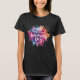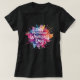 Decorative International Women's Day 2026 women's black t-shirt with colourful paint splash background in pink, blue, lilac and yellow. International Women's Day is a global day celebrating women's achievements politically, socially and economically, supporting advancement of women and to educate and to raise awareness of women's equality around the world.