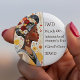 A button for International Women's Day to promote support of this day that celebrates women. This button has an African0American woman surrounded by colorful flowers and the hashtag #givetogain.