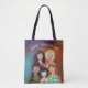 Vacker Tote Bag firar Internationell Kvinnodagen för olika kvinnor, med konstnärligt porträtt med multietniska kvinnliga karaktärer. All text kan enkelt uppdateras. Den här bakgrunden har ett färgstarkt färg-övertoningsschema med lila-blått till orange. Underbar gåva till kvinnor i ditt liv eller på arbetsplatsen. Kvinnodagen i lycklig Internationell!