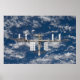 Bakom en blå och vit jord ses Internationell Space Station från Space Shuttle Discovery när de två rymdfarkosten börjar sin relativa separation. Tidigare avslutade besättningarna STS-119 och Expedition 18 9 dagar, 20 timmar och 10 minuter av samarbetsarbete ombord på skytteln och station. Avdockningen av de två rymdfarkosten skedde kl. 17.53. (CDT) den 25 mars 2009.