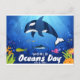 Världshälsodagen påminner alla om den viktiga roll som våra hav har i det dagliga livet. De är vår planets lungor, en stor källa till mat och medicin, och en kritisk del av vår biosfär. Syftet med Världshälsodagen är att informera världen om de mänskliga åtgärdernas inverkan på havet, att utveckla en global rörelse av medborgare för havet och att mobilisera och ena världens befolkning i ett projekt för hållbar förvaltning av världshaven. Den här multifärgaden visar en undervattensscen med blå val, svärdfisk, liten färglös fisk och korall. Datumet och årstexten "8 juni 2023" kan ändras.