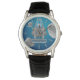 Science fiction med redigerbar text. Spaceshöftastrogator på blå bakgrund med abstrakt grått- asteroider. Anpassningsbar text på blå, glasliknande knapp. Den här designen är en del av min Interstellar Odyssey-serie.