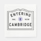 Visa din Cambridge-anda med den här perfekten som en kopia av Entering Cape Cod-välkomstskylten du ser när du kör till stan. Håll den till din bilstötfångare, koffert, resväska eller köp ett gäng som gåvor! Välkommen till Cambridge Mass.