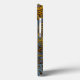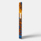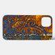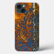 Skräckad, intrikad orange och gult fleur de swirl-teckningsdesign överlappad med blå detaljer.