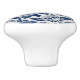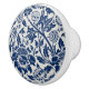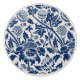 Intricate blue floral pattern on a light background, featuring stylized blooms and curling leaves, evoking a vintage, elegant feel.