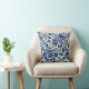 Intricate blue floral pattern on a light background, featuring stylized blooms and curling leaves, evoking a vintage, elegant feel.