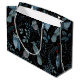 Intricate pattern of blue birds and an owl, adorned with floral and paisley designs on a black background, conveying an elegant and whimsical tone.