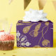Intricate floral pattern with gold and white branches, leaves, and flowers on a black background. The design feels elegant and sophisticated.