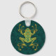 Denna stamgroda från träd dekoreras med invecklade gula gulter och mönster. Insida i grodan målas ett djupt blått färg som i bakgrunden ge mönster återger en vacker kontrast. En skugga faller precis under den symmetriska grodan träd skapar att den flyter precis ovanför yta i denna nyckelkedja. Denna stiliserade design är en slående återgivning av denna underbara lilla varelse.
