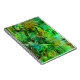 Ett sjudande och krångligt mönster fyller scenen, dominerat av nyanser av grönt med orange och blått. Snurrande former och organiska motiv blandas ihop, vilket skapar rörelsekänsla och komplexitet.