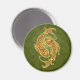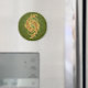 Den här stiliserade symbolen för Pisces zodiac-tecken dekoreras med linjer och punkt mönster. Den symmetriska utformningen har två utfiskade fiskar som passar ihop i en yin yang mönster. Den här fantastiska magneten för gult och grönt är ett vackert och snyggt sätt att visa upp ditt Astrologiska tecken.