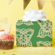 Vackert inslagna pappra kännetecken gör guld och vit keltisk fjäril mönster på gröntens bakgrund. Den keltiska fjärilen är en symbol för själen och förlossningen