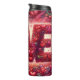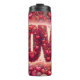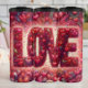 This stunning digital illustration features the word LOVE rendered in bold, oversized typography constructed entirely from hundreds of tiny, detailed hearts and swirling organic shapes. The letters glow with a soft internal light, set against a rich, multi-layered background of crimson, magenta, and soft pink filigree. The artwork is framed by an intricate border of dense floral-inspired heart patterns and delicate line art, creating a sophisticated and romantic aesthetic. This seamless-style graphic is designed as a full-wrap for insulated tumblers, offering a high-impact, 360-degree visual experience. Its professional composition and vibrant, warm color palette make it a premium gift choice for Valentine Day, anniversaries, or any celebration of love.