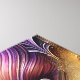 Swirling patterns of purple and gold create a mesmerizing abstract design. Delicate floral motifs add elegance and complexity to the piece.