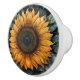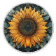 En konstnärlig bild av en stor solrosa med detaljerade blad på en dekorativ mörk fylld med löv.