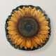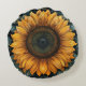 En konstnärlig bild av en stor solrosa med detaljerade blad på en dekorativ mörk fylld med löv.