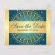 På så sätt kan du spara vykortet i djupt tårblått och guld har en medaljon mönster med ornate guld scrollsar och punkter på det som matchar de indianinspirerade bröllopsinbjudningarna som visas nedan. Om du vill ha några ändringar eller behöver hjälp med texten kan du skicka e-post till niteowlstudio@gmail.com.