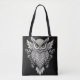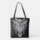 Tote-väskan dekorerad med en bedövande och utförlig illustration av uggla med intricate mandala stil mönster och elegant swirl inslag. Den här fängslande designen gör din tote-väska unik och unik i sitt slag