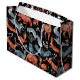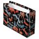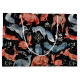 Illustrated woodland animals in red and blue, including foxes, bears, owls, and deer, are adorned with intricate patterns on a black background.