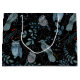 Intrikat mönster av blå fåglar och en uggla, prydd med blommotiv och paisleydesign på svart bakgrund, som förmedlar en elegant och lekfull ton.