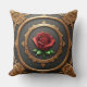 Intrikat guldram med röd ros kudde