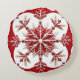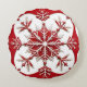 Symmetrisk och konstnärlig snöflinga i levande röda nyanser, med intrikata geometriska former och frostiga designelement mot en vit bakgrund, som frammanar en känsla av vinter och festlig skönhet.