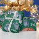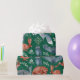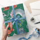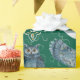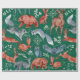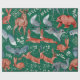 Illustrerade skogsdjur i rött och blått, inklusive rävar, björnar, ugglor och hjortar, är prydda med invecklade mönster på en svart bakgrund.