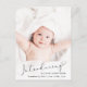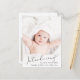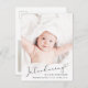 Ett modernt vykort för födelseannonsering. På framsidan finns fotot överlagrad med "Introducing" skrivet i ett skript för snyggt med en hjärtsvikt. Lägg till hans eller hennes namn, födelsedatum och födelsestatus. På baksidan lägger du till ytterligare ett meddelande om bild och personlig.