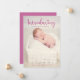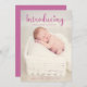 "Introduktion" i elegantens handskriftsskript text font rosa visning text. Fotot från baby är stjärnan i detta födelseattest. Anpassa detta genom att byta ut fotot mot det nya paketet med glädje och ange anpassningsbar för personlig.