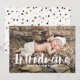 Snyggt baby-meddelande med vit borstad stil typografi med rosa, svart och kopparkonetti-punkter mönster.