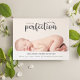 Gratulera till ditt nyfödda på det sötaste med den här eleganten och ett hjärtligt födelseattest. Med en mjuk bakgrund, en neutralt och en fullt fotolayout framhäver den här designen på ett vackert sätt baby:s första porträtt. Uttrycket "införa perfektion" skrivs på ett passande sätt i ett modernt typsnitt, där tonen anges för denna minimalistiska men ändå sentimentala design. Personligen, inklusive baby namn, födelsestatus, datum och stolt föräldranamn, trycks i ett rent halsband för en tidlös avsluta. Perfekt för att skicka till nära och kära eller spara som en keepé.