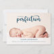 Gratulera till ditt nyfödda på det sötaste med den här eleganten och ett hjärtligt födelseattest. Med en mjuk bakgrund, en neutralt och en fullt fotolayout framhäver den här designen på ett vackert sätt baby:s första porträtt. Uttrycket "införa perfektion" skrivs på ett passande sätt i ett modernt typsnitt, där tonen anges för denna minimalistiska men ändå sentimentala design. Personligen, inklusive baby namn, födelsestatus, datum och stolt föräldranamn, trycks i ett rent halsband för en tidlös avsluta. Perfekt för att skicka till nära och kära eller spara som en keepé.